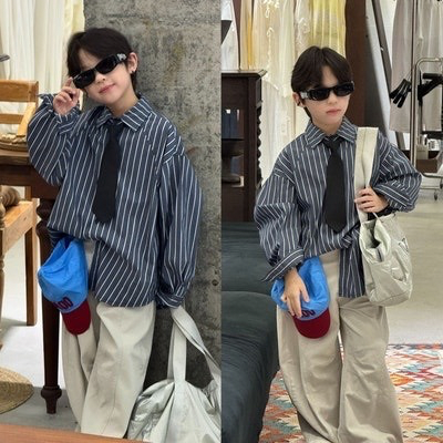 [빠른수입] 줄남방넥타이와이드바지셋